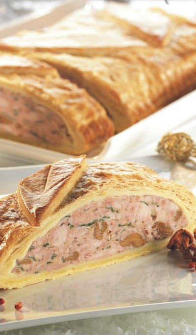 Repas gourmand par excellence, les feuilletés régalent toute la tablée avec leur pâte feuilletée pure beurre. Pour la garniture, c’est selon les envies : jambon blanc & Comté AOP pour notre feuillantine Comtoise, saumon et fondue de poireaux aux crevettes pour notre feuilleté au poisson, viande de porc marinée au pinot noir pour notre feuilleté vigneron, ou encore viande de chapon et pépites de foie gras pour notre recette festive, il y en a pour tous les goûts !