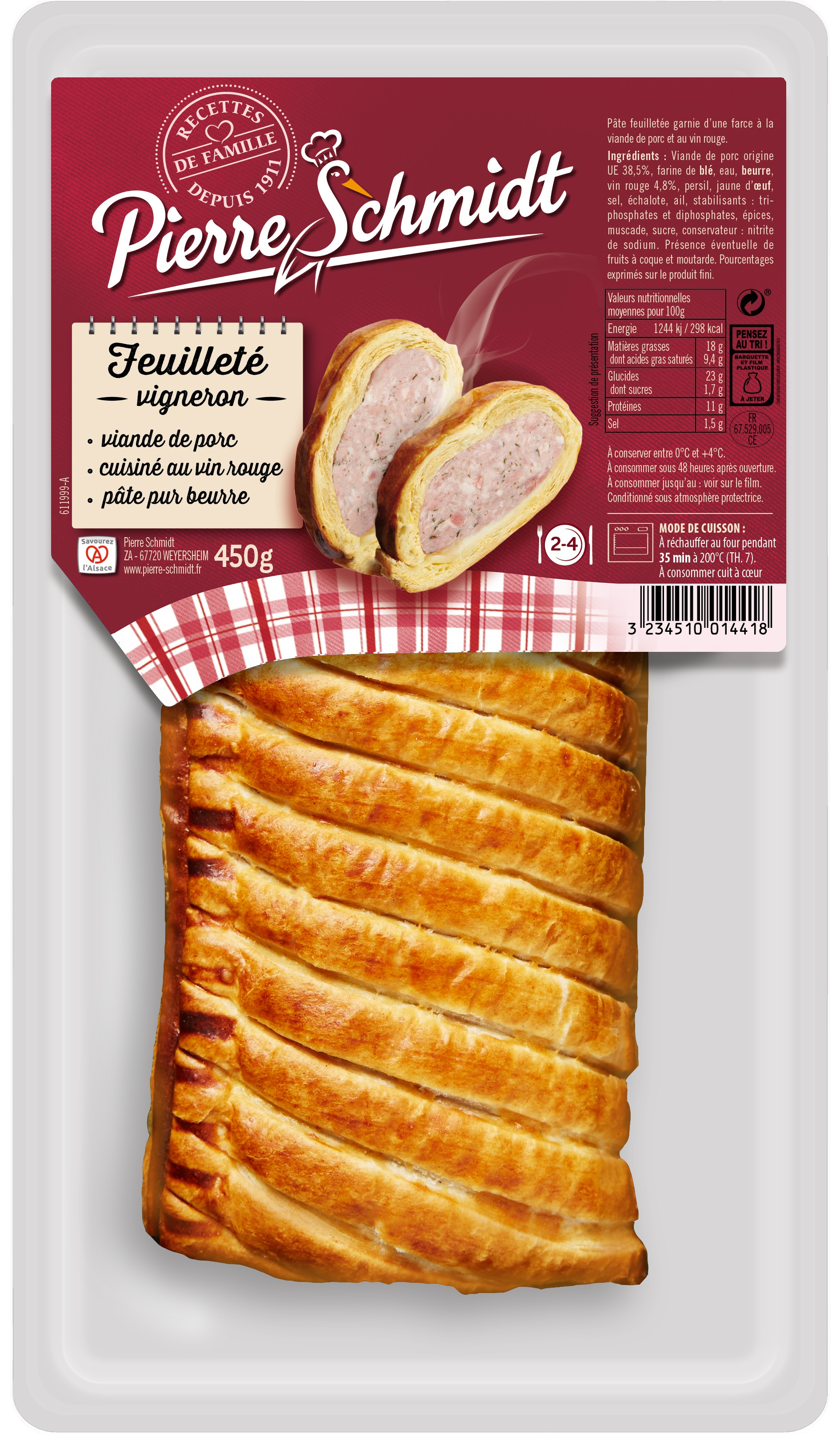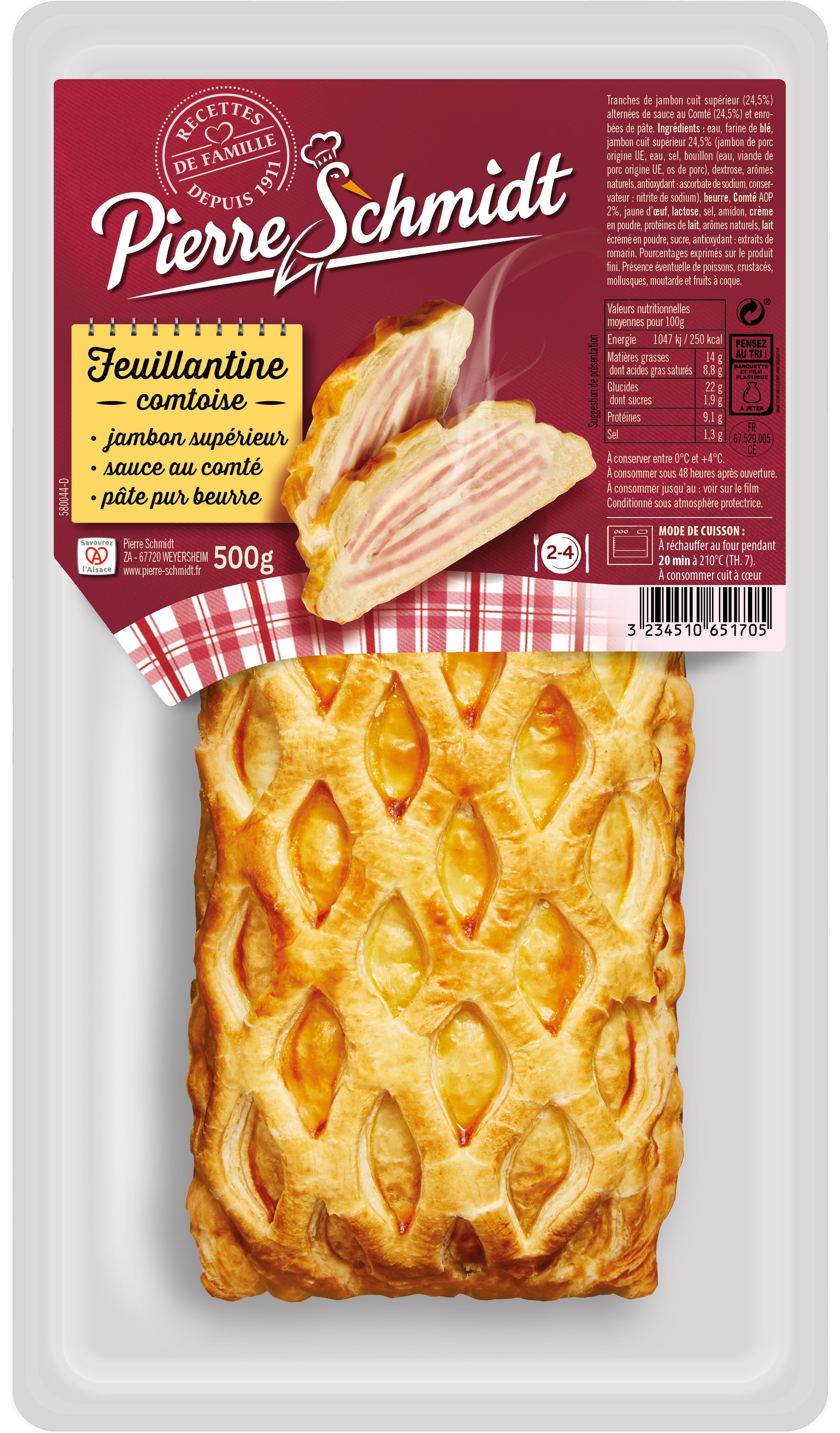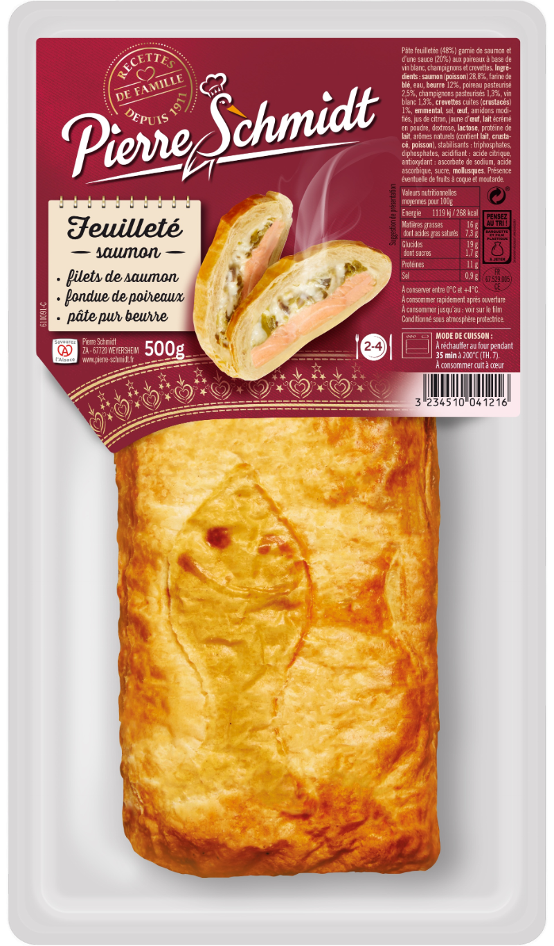 Repas gourmand par excellence, les feuilletés régalent toute la tablée avec leur pâte feuilletée pure beurre. Pour la garniture, c’est selon les envies : jambon blanc & Comté AOP pour notre feuillantine Comtoise, saumon et fondue de poireaux aux crevettes pour notre feuilleté au poisson, viande de porc marinée au pinot noir pour notre feuilleté vigneron, ou encore viande de chapon et pépites de foie gras pour notre recette festive, il y en a pour tous les goûts !