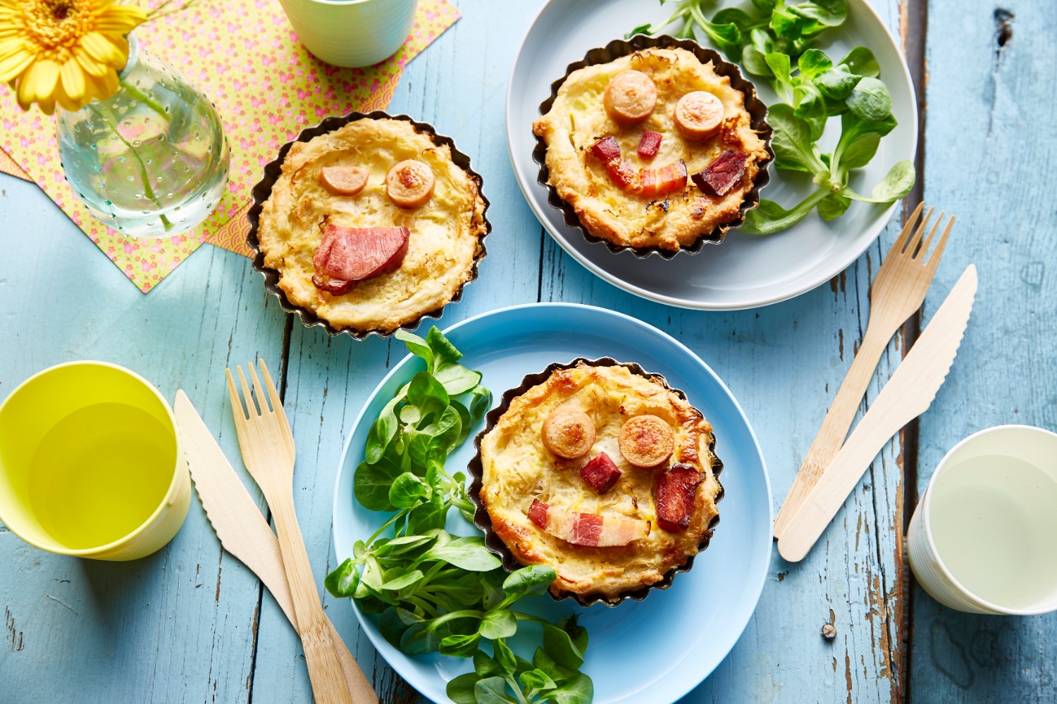 Coupez les pommes de terre et déposez-les sur les fonds de tarte.